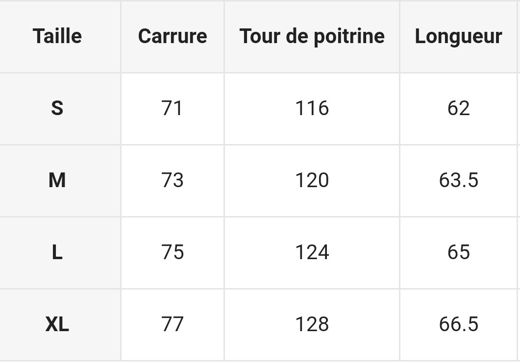 Veuillez regarder le tableau des tailles, s'il vous plaît ???